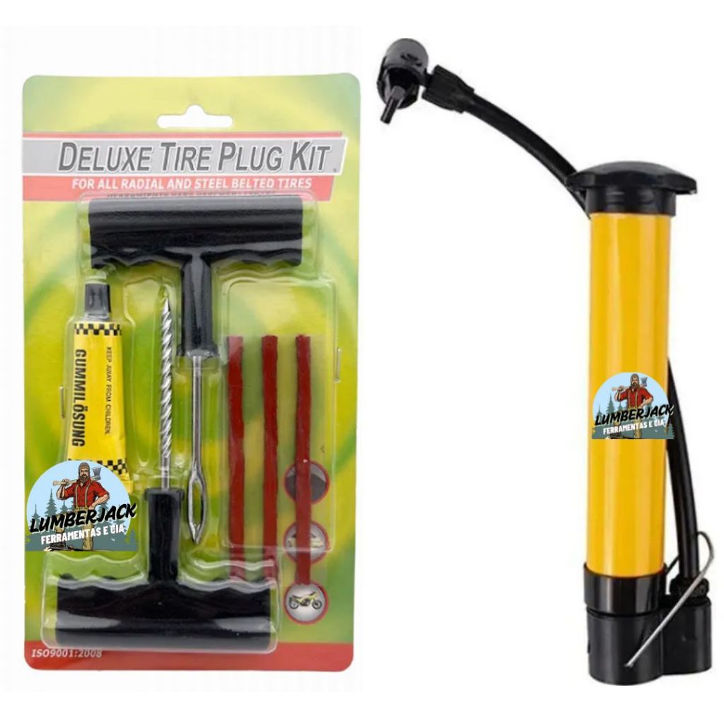Kit Reparo de Pneu sem Camara + Bomba de ar para Motos e Carros
