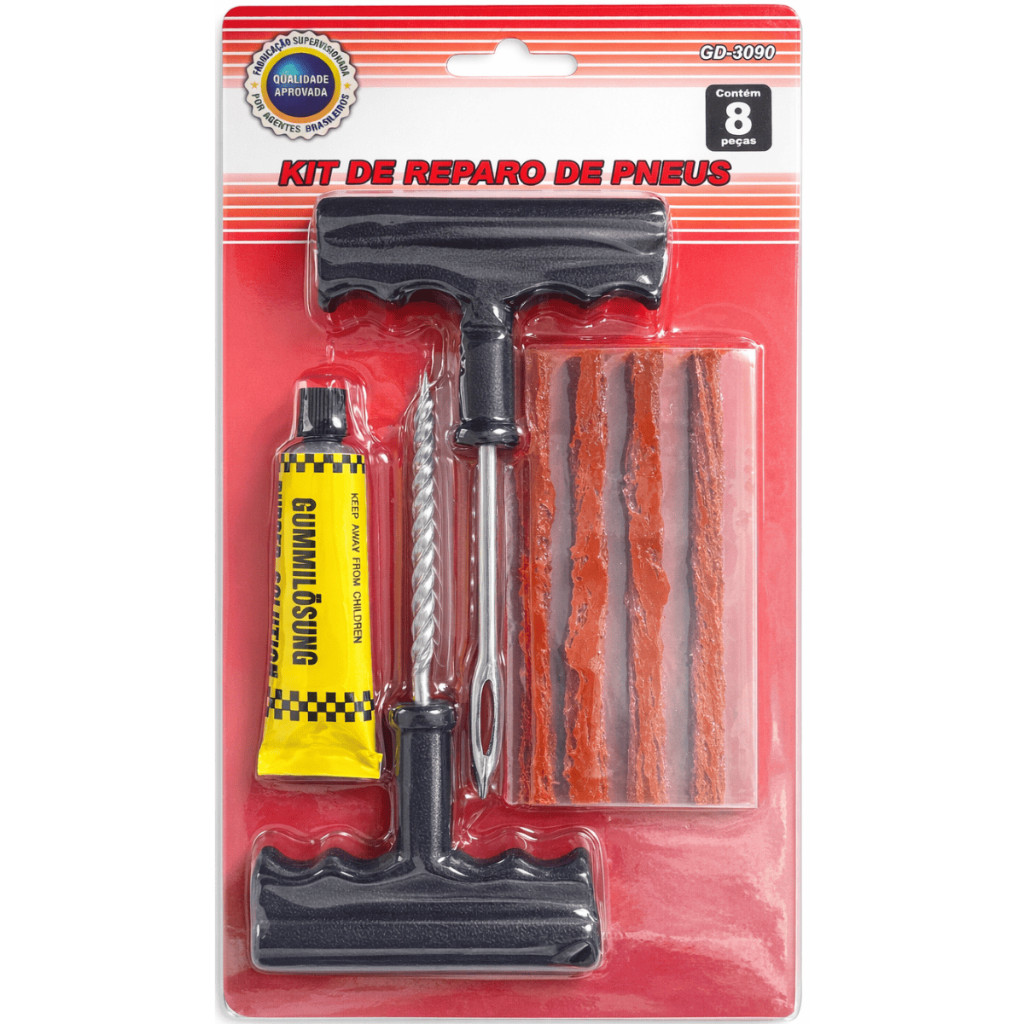 Kit Reparo Pneu Sem Câmara Carro e Moto + 5 Refis Selante Remendo Macarrão