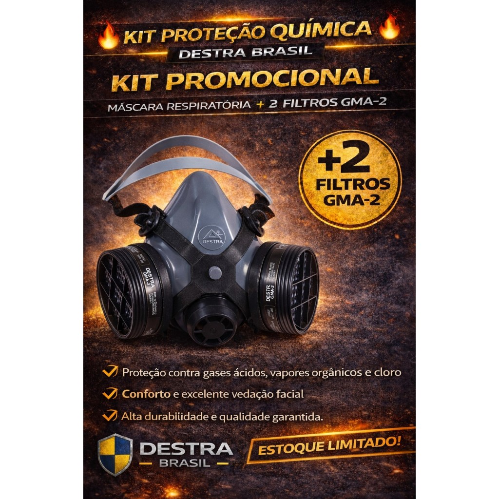 🔥 KIT PROTEÇÃO QUÍMICA – MÁSCARA RESPIRATÓRIA + 2 FILTROS GMA-2 Respirador com alta vedação e proteção profissional Garanta sua segurança no trabalho com este kit completo de proteção respiratória, ideal para ambientes com gases, vapores orgânicos e agentes químicos. Conforto, vedação eficiente e durabilidade para o dia a dia profissional. ✅ O QUE VEM NO KIT 1x Máscara Respiratória 2x Filtros GMA-2 🛡️ PROTEÇÃO INDICADA PARA Vapores orgânicos Cloro Ambientes industriais, limpeza pesada, pintura, manutenção, saneamento, etc. ⭐ BENEFÍCIOS ✔ Excelente vedação facial ✔ Confortável para uso prolongado ✔ Material resistente e durável ✔ Encaixe firme dos filtros ✔ Design anatômico ✔ Fácil de ajustar 📌 INDICADO PARA Pintores Mecânicos Trabalhadores da indústria Limpeza química Manutenção predial Uso profissional e técnico ⚠️ ATENÇÃO Verifique sempre o prazo de validade dos filtros Não utilizar em ambientes com deficiência de oxigênio Substitua os filtros conforme uso e recomendação técnica 📦 Envio rápido e estoque limitado! 🛒 Garanta já o seu kit e trabalhe com mais segurança! Características principais Marca Destra Brasil Modelo MIG12 - VO Tamanho da máscara U Outras características Descrição Máscara Respirador purificador de ar de segurança, com corpo confeccionado em composto de borracha e silicone ou PVC, com filtro VO (GMA-1 vapores orgânicos) incluso. Filtra vapores orgânicos até 1000ppm ou até 10 vezes o seu limite de tolerância ou até a concentração IPVS, o que for menor e também absorção química do contaminante, através de sua reação com a substância utilizada no tratamento.