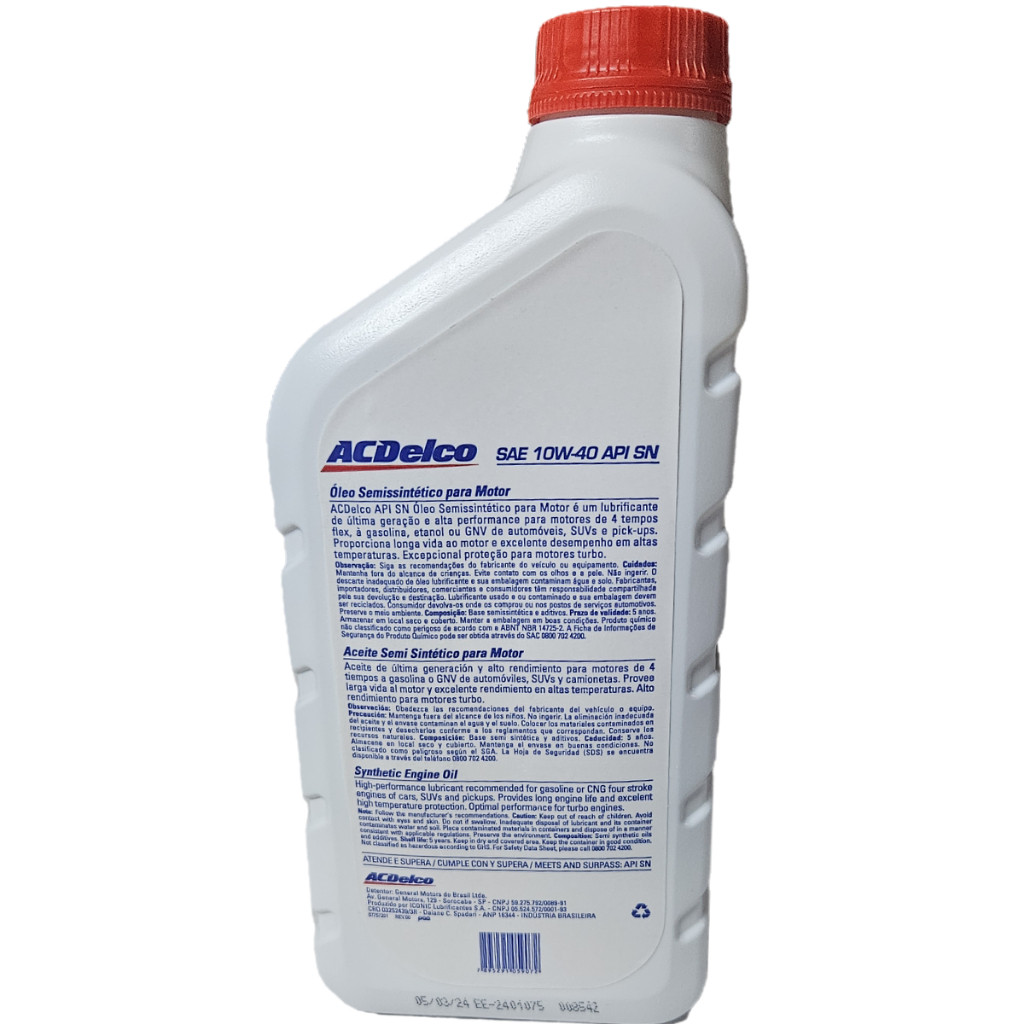 **** CONCESSIONÁRIAS CHEVROLET GRANDE BAHIA **** Quem vende mais, pode mais. 4L Óleo Semissintético API SN ACDelco - 98550552 POR QUE ESCOLHER O ÓLEO SEMI-SINTÉTICO ACDELCO 5W30? Qualidade Confiável: Formulado com tecnologia avançada para oferecer proteção eficaz ao motor. Desempenho Eficiente: Garante uma lubrificação adequada e minimiza o desgaste das peças. Economia de Combustível: Contribui para uma melhor eficiência energética e arranques mais suaves. O QUE ESTÁ INCLUÍDO: 4L Óleo Semissintético API SN ACDelco - 98550552 Filtro de Óleo ACDelco - 88905845 Filtro de Combustível ACDelco - 25FC0225 ESPECIFICAÇÕES: Tipo: Óleo API SN Semissintético Viscosidade: 10W40 API SN Marca: ACDelco Condição do Item: Novo APLICAÇÃO DO PRODUTO: Chevrolet Astra (1989 a 2005) Chevrolet Blazer (1989 a 2005) Chevrolet Captiva (1989 a 2005) Chevrolet Celta (1989 a 2005) Chevrolet Corsa (1989 a 2005) Chevrolet Kadett (1989 a 2005) Chevrolet Montana (1989 a 2005) Chevrolet Novo Corsa (1989 a 2005) Chevrolet Prisma (1989 a 2005) Chevrolet S-10 (1989 a 2005) Chevrolet Vectra (1989 a 2005) Chevrolet Zafira (1989 a 2005) Nota: Este fluido é adequado para transmissões automáticas e sistemas de direção hidráulica que exigem especificação Dexron VI. BENEFÍCIOS: Desempenho Consistente: Melhora a performance geral do motor, proporcionando uma condução mais suave. Suporte e Garantia: Todos os itens acompanham nota fiscal e garantia de fábrica. ATENÇÃO! Antes de finalizar a compra, envie-nos o chassis do seu veículo via chat para confirmar a compatibilidade. OBSERVAÇÕES IMPORTANTES: Todos os produtos são novos, com nota fiscal e garantia de fábrica. Verifique a compatibilidade com seu veículo antes da compra. ENVIO RÁPIDO E GARANTIDO: Compre durante o horário comercial e seu pedido será enviado no mesmo dia! SUPORTE E HORÁRIOS DE ATENDIMENTO: Equipe de Atendimento e Suporte Técnico Especializado à disposição. Atendimento de Seg. a Sex. das 8h00 às 18h00. ---- CONCESSIONÁRIAS CHEVROLET GRANDE BAHIA ----