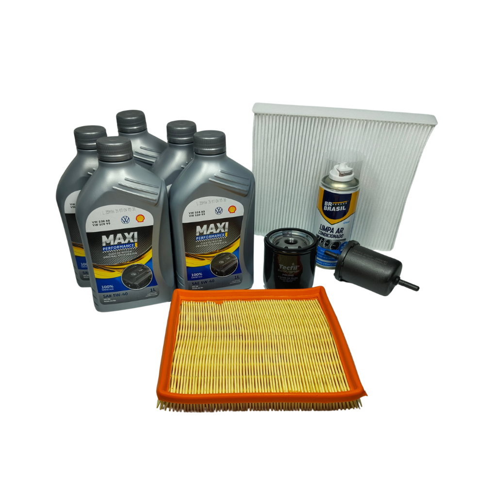 Conteúdo da embalagem: 05 litros Óleo Motor 5w40 API SN Volkswagen Maxi Performance 5W40 100% Sintético (Produto Genuíno Volkswagen) 01 Filtro de óleo - TECFIL PSL545 01 Filtro de Combustivél GI50/07 01 Filtor de Ar ARL6080 01 Filtro de Ar condicionado ACP312 01 higienizador BRBrasil 01 Anel vedação Carter 01 Etiqueta controle Óleo **Filtros podem variar conforme disponibilidade de estoque TECFIL, WEGA, METAL LEVE MANN** **Acompanha etiqueta de quilometragem para marcar a troca de óleo do seu carro** **Produtos à pronta entrega ** Aplicação: VOLKSWAGEN Virtus 1.6 MSI 2018 > Flex Indicado para veículos Volkswagen Total Flex que utilizam as especificações VW 508 88 e VW 509 99 (Conforme o manual do proprietário). MAXI PERFORMANCE foi formulado para proporcionar o máximo desempenho e proteção ao seu motor Volkswagen. A sua formulação REO - Robust Engine Oil possui aditivos específicos para ser uma proteção adicional contra combustíveis de qualidade variável e assegurar sempre a máxima lubrificação do motor Pode ser usado em motores Flex, Gasolina, Etanol, GNV e diesel. Especificações: API SN ACEA A3/B4 VW 509 99 VW 508 8 Autostilemotors.