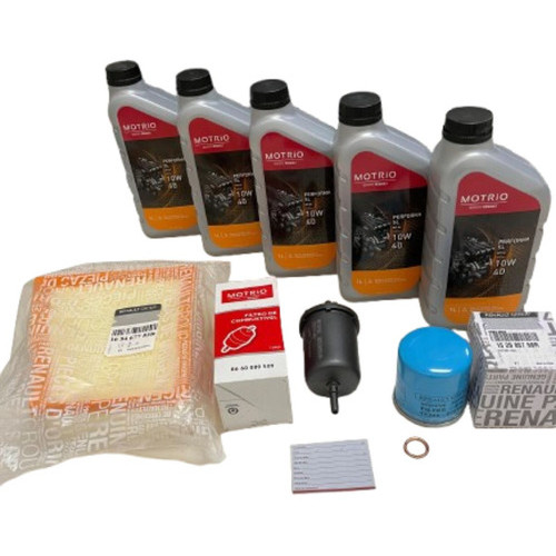 VILLE RENAULT SÃO JOSÉ DO RIO PRETO Aplicações: - Renault Fluence 2.0 16V (M4R) Automático OBS: Para modelos com câmbio manual o filtro de ar do motor é diferente, por gentileza comunique por mensagem ao realizar a compra para ser enviado o filtro correto. Detalhes do anúncio: - 8660089534 - 5x litros óleo 10w40 - 8660089509 - 1x filtro de combustível - 152085758R - 1x filtro de óleo original - 1102601M02 - 1x arruela vedação cárter - 165467753R - 1x filtro de ar motor Antes de efetuar a compra favor informar chassis do veículo no campo de perguntas para confirmar aplicação da peça para o mesmo. Também somos loja física, portanto pedimos que consulte a disponibilidade do (s) produto (s) antes. Fabricante: Renault Garantia de 3 Meses contra defeitos de fabricação. Dúvidas frequentes: Os produtos são novos? Sim, todos nossos produtos são novos e de procedência legal. Posso retirar pessoalmente? Sim. Trabalhamos com envio ou com retirada em nossa loja física. O produto tem nota fiscal? Sim, emitimos nota fiscal para todas as compras. Recomendamos que a instalação seja feita por profissional especializado e não nos responsabilizamos pelo mau uso do produto. Quem somos?? Grupo de Concessionárias autorizada Renault, localizadas em São José do Rio Preto, Araçatuba, Votuporanga e Catanduva. Estamos no segmento à mais de 15 anos, visando não só atender, mas superar as expectativas de nossos clientes. Venha fazer parte desta família! Horário de atendimento: Seg. à sex.: 7:30h às 18:00hrs
