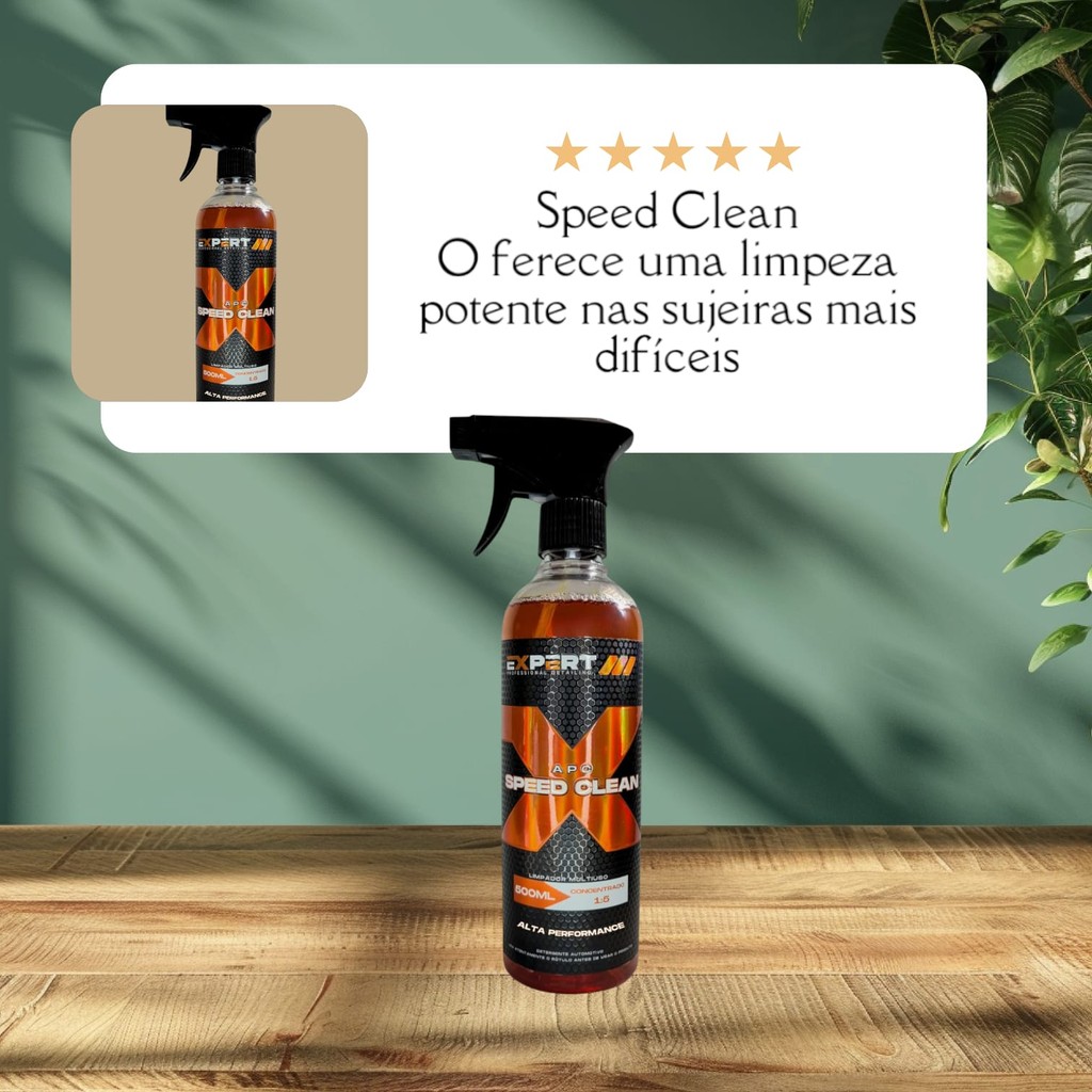 REPLEX EXPERT REVITALIZADOR DE PLÁSTICOS EXTERNOS O REPLEX REVITALIZA PLÁSTICOS EXTERNOS COMO PARACHOQUES , CAIXAS DE RODAS, MANGUEIRAS DO MOTOR E BORRACHA DE PORTAS, HIDRATANDO AS CAMADAS DEGRADADAS, PROTEGENDO E RESTAURANDO A COR ORIGINAL. SUA FÓRMULA ESPECIAL CONTÉM PROTEÇÃO UV. Características Revitaliza plástico / proteção UV / Aroma açaí. Diluição Pronto-Uso Como Usar Com o local limpo, aplique o REPLEX na esponja ou pano microfibra seco e espalhe uniformemente sobre a área desejada. Utilize uma parte limpa do pano microfibra para dar o acabamento. Repita a operação sempre que necessário. Produtos para os profissionais detail demandam características essenciais: Alta Qualidade, Desempenho Excepcional com Resultados Duradouros. Pega a dica: Apenas os EXPERTS conseguem alcançar esse nível extra de excelência. Seja um EXPERT você também! EXPERT . SPEED CLEAN 500ML O APC SPEED CLEAN oferece uma limpeza potente que remove as sujeiras mais difíceis, tanto de natureza orgânica e mineral. Sua fórmula concentrada foi desenvolvida para unir a eficiência e a praticidade, limpando com segurança vários tipos de sujeiras como: gorduras, manchas engorduradas, bancos encardidos, tetos, painéis, laterais de porta, entre outros. Além de entregar um resultado excepcional, deixa uma agradável e duradoura fragrância. MODO DE USAR: Utilizar até 1 parte de produto para 5 partes de água. Antes de iniciar a aplicação deste produto, certifique-se que a superfície não esteja quente e não aplique o produto com o veículo exposto ao sol. Aplicar sobre a superfície a ser limpa com o auxílio de uma esponja ou pano microfibra, fazendo movimentos circulares. Em seguida enxágue ou passe um pano umedecido para remoção de possíveis resíduos. Caso necessário repita a operação. COMPOSIÇÃO: Água, Solvente, Neutralizadores de pH, Tensoativos aniônicos, Conservante, Fragrância e Corante. CARACTERÍSTICAS: Alto Poder de Limpeza Concentrado – rende muito PH Neutro Fragrância Cítrica VALIDADE: 24 meses a partir da data de fabricação. Lote e Fabricação: vide embalagem.