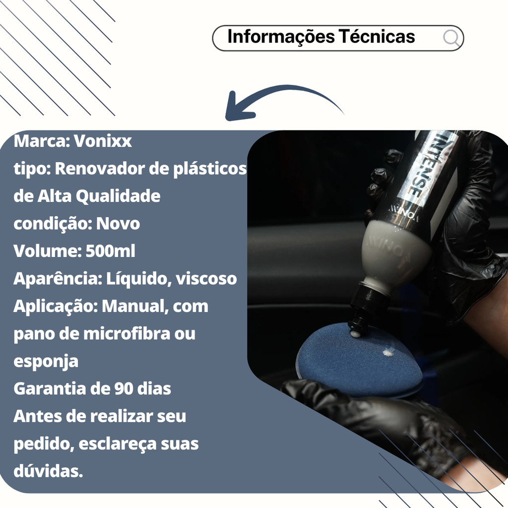 Kit Revitalizador Plásticos Intense 500ML Vonixx + Aplicador