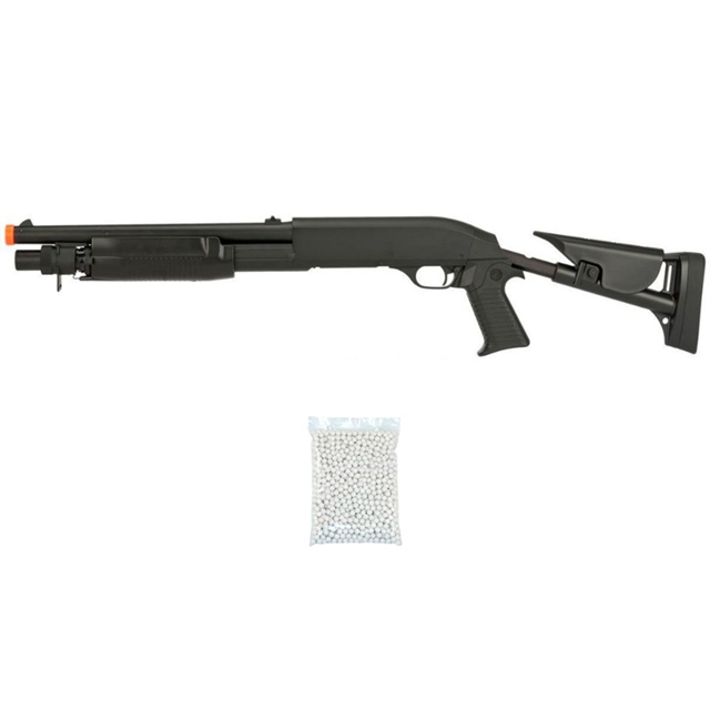 Kit Rifle Shotgun AirSoft M56C Spring 6mm Preta - Double Eagle + 2000 Esferas 0.12g