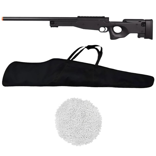Kit Rifle Sniper AWP M59A AirSoft Spring 6mm Preta - Double Eagle + Capa + 2000 Esferas 0.12g