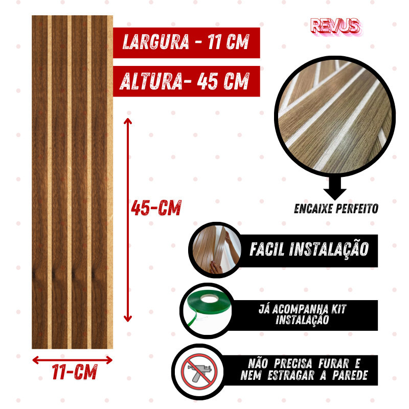 PEDIDOS EFETUADOS ATE AS 11:00 HORAS, É POSTADO NO MESMO DIA. Esse kit de decoração é ideal para quem deseja renovar o ambiente com facilidade e estilo. Ele conta com: Tamanho: 11 x 45 cm, cada peça do kit possui essas dimensões. **Materiais utilizados especificações** 10 Peças 45 de altura por 11 de largura +Kit Instalação - DUPLA FACE 12MM Revestimento - ENVERNIZADO Mdf - 3mm Efeito - 3d Como Instalar: -Preparação da Superfície: Certifique-se de que a superfície onde será instalado seja lisa, limpa e nivelada. -Encaixe das Ripas: Comece a aplicação na área mais alinhada, encaixando uma peça na outra. -Ajustes: Meça a parede e, se necessário, ajuste as peças com ferramentas adequadas. -Fixação com Fita Dupla Face: Use a fita fornecida no kit para garantir que as peças fiquem bem fixadas. Indicado para: -Ambientes residenciais e comerciais: Perfeito para dar um toque especial em casas, apartamentos, lojas e outros locais. -Decoração de interiores: Ideal para renovar a decoração de salas de estar, quartos, escritórios e espaços de trabalho. -Este kit é uma opção prática e elegante para decorar e dar um novo visual ao seu ambiente!