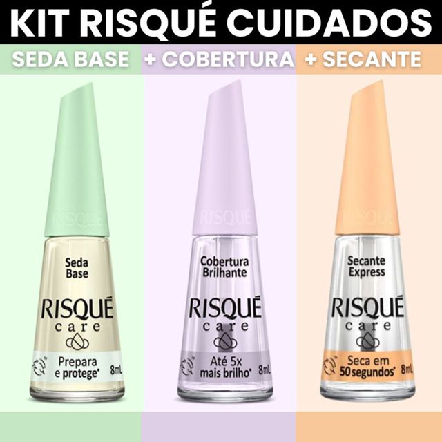 | Kit Risque Care Seda Base Extra Brilho Secante Express Base Cuidado... este produto | R$ 10,90 | 48% | 4.9/5 | 190 |