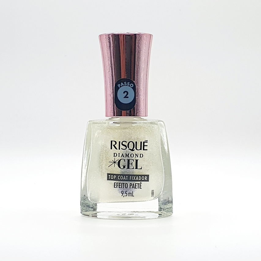 Kit Risqué Diamond Gel 1 Top Coat Fixador 9,5ml + 1 Top Coat Efeito Paetê 9,5ml Realce suas unhas com muito mais brilho, proteção e acabamento impecável. O Kit Risqué Diamond Gel reúne dois finalizadores que transformam a sua esmaltação: Top Coat Fixador: prolonga a durabilidade e o brilho do esmalte. Top Coat Efeito Paetê: garante um toque sofisticado e iluminado às unhas.