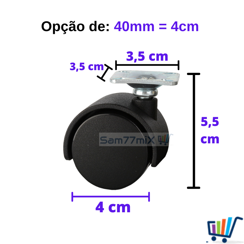 DESCRIÇÃO DO PRODUTO: Rodas Rodizio Giratório Kit 4 Unidades Para Armários Berços Cômodas Pufe Rack Moveis De Escritório Capacidade Até 25kg Cada Ideal para armários, berços, cômodas, pufe, vasos, racks, decoração, artesanato, Moveis de Escritório, etc.. Capacidade de carga aproximadamente 25kg por peça ESPECIFICAÇÕES DO FABRICANTE: Rodinha possui 30 mm diâmetro, com chapa 30 x 30 mm. Altura total da rodinha com a chapa fica 42 mm. Rodizio de plástico com chapa galvanizada e roda dupla Possui alta qualidade e ótimo acabamento. não acompanha os parafusos Cor: Preto CONTEÚDO DA EMBALAGEM: 01 Kit 4 Unidades Rodas Rodizio Giratório Para Armários Berços Cômodas Pufe Rack Moveis De Escritório Capacidade Até 25kg Cada Garantia: 30 dias para defeito de fabricação. DÚVIDAS FREQUENTES O PRODUTO É NOVO? - Sim. Apenas Comercializamos Produtos 100% Novos O PRODUTO E TESTADO ANTES DO ENVIO? - Sim, Todos Nossos produtos são TESTADOS antes do envio para o cliente para que você receba o produto em PERFEITO FUNCIONAMENTO. - Com exceção dos produtos que vem LACRADOS de fábrica. QUAL O PRAZO DE ENTREGA? - Compra Realizada e Pagamento Confirmado Pela SHOPEE Até as 14hs ENVIAMOS NO MESMO DIA. - Despachamos em menos de 24 horas. - O tempo de entrega pode variar dependendo do local de destino. - Consulte na página do produto o tempo de entrega para maior precisão. AGRADECIMENTOS: Agradecemos a sua confiança em nossa loja Sam77miX Temos Mais + de 1000 Qualificações Positivas de nossos clientes com 05 (cinco) estrelas. E um prazer ter você como nosso cliente. Prestando sempre o melhor atendimento a você A Loja Sam77miX Agradece a Sua Preferência...
