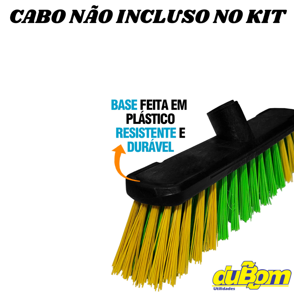 Kit Rodo 60cm + Vassoura Lava Casa + Vassoura Teteia P&B + Esfregão Lava Vidro . Rodo 60cm A base do rodo duBom é feita de plástico que possui ganchos ondulados garantindo um melhor encaixe / fixação do pano, fazendo que o pano não saia com facilidade. Seu puxador é feito com borracha dupla em EVA muito mais grossa que garante uma ótima performance tanto para puxar a água, quanto para secar. Ficha técnica: - Comprimento: 60 cm - Largura: 1 cm - Altura: 5 cm O rodo puxa seca de 60cm é indicado para uso interno ou externo. Um produto de alta durabilidade, perfeito para uma limpeza eficiente e deixar o ambiente limpinho, rodo bastante resistente e muito eficiente. . Vassoura Lava Casa Esta é uma vassoura inovadora, pois combina a funcionalidade de um esfregão com cerdas duras que tornam a limpeza do ambiente muito mais fácil. Especialmente indicada para pisos rústicos, pedras e superfícies acimentadas, a vassoura duBom oferece uma limpeza eficiente mesmo nas sujeiras mais difíceis. Ficha técnica: - Comprimento: 30 cm - Largura: 4,5 cm - Altura: 10 cm - Entrada do cabo: 22 mm (cabo comum) Com cerdas sintéticas super-resistentes, a Vassoura Lava Casa é a escolha ideal para limpeza pesada. Suas cerdas curtas e duras permitem esfregar e lavar pisos regulares e irregulares, como cozinhas, banheiros e varandas. . Vassoura Teteia P&B A vassoura Teteia P&B duBom é ideal para limpar pisos internos e externos, especialmente pisos lisos. Sua base é feita em plástico e suas cerdas são prumadas tornando-a uma vassoura indispensável para ter uma limpeza produtiva e eficaz. Ficha técnica: - Comprimento: 29 cm - Largura: 5 cm - Altura: 11 cm - Entrada do cabo: 22 mm (cabo comum) Com um total de 96 tufos de cerdas macias, esta vassoura é altamente eficiente para varrer pelos de animais, pós e farelos, assim capturando a sujeira de forma excepcional e permitindo uma varrição mais abrangente. . Esfregão Lava Vidro Pode ser usado em diversos tipos de vidros, como janelas, sacadas, automóveis e demais superfícies de vidro. Excelente esfregão, prático e eficaz que irá te auxiliar na hora da limpeza dos vidros. Ficha técnica: - Comprimento: 25 cm - Largura: 9 cm - Altura: 3 cm - Entrada do cabo: 22 mm (cabo comum) Produtos super práticos pois suas bases pode ser rosqueada em qualquer cabo de vassoura comum (cabo não incluso). Itens incluso: - 01 rodo de plástico 60cm NÃO ACOMPANHA O CABO - 01 vassoura lava casa NÃO ACOMPANHA O CABO - 01 vassoura teteia p&b NÃO ACOMPANHA O CABO - 01 esfregão lava vidro NÃO ACOMPANHA O CABO ENVIO IMEDIATO ! Com GARANTIA, e todo suporte do Grupo duBom Utilidades ! Temos uma linha completa de esfregões, e utensílios para sua casa ou empresa ! Qualquer dúvida, entre em contato com a gente que responderemos RAPIDAMENTE : )