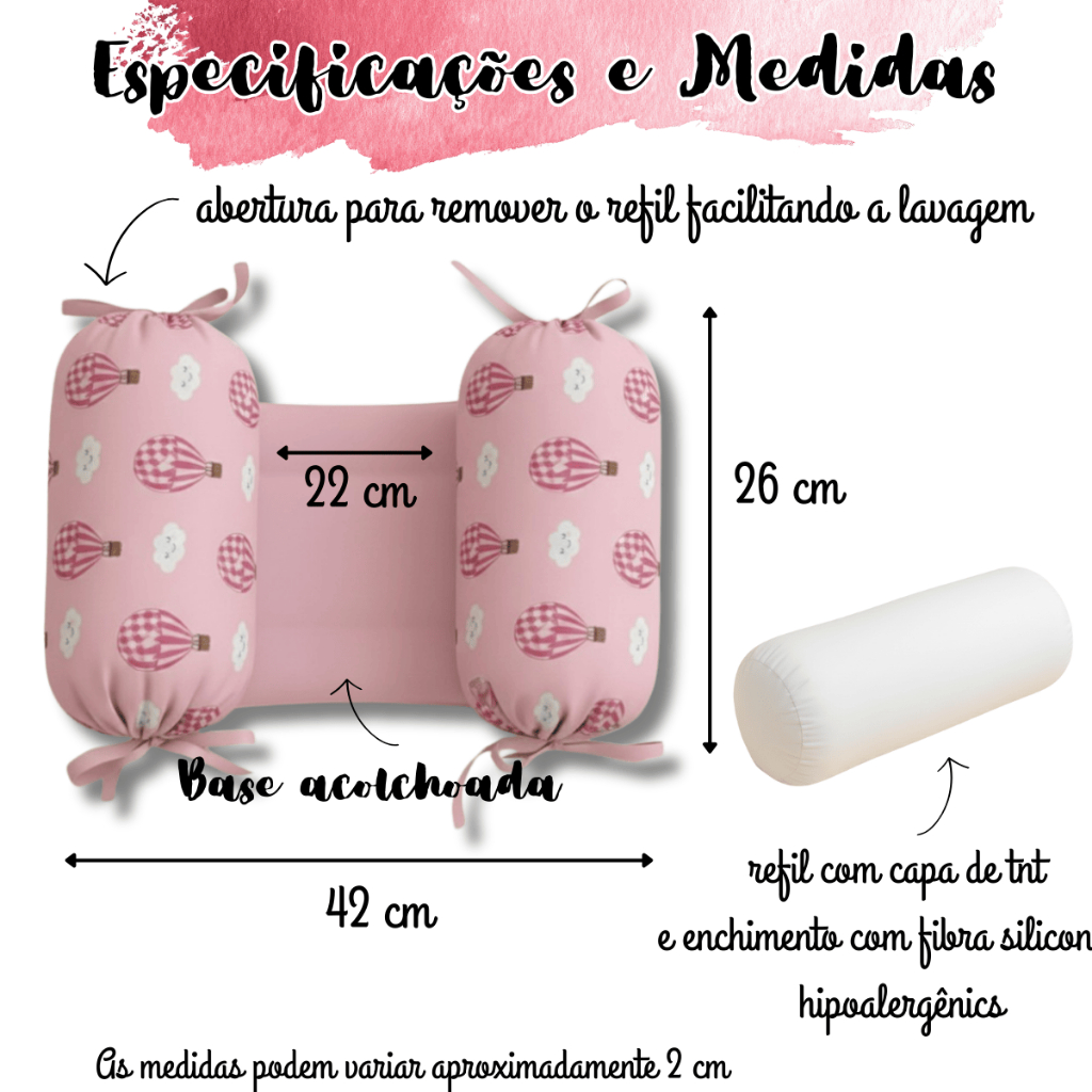 kit Rolinho segura bebê e travesseiro anatômico, segurança, conforto, antialérgico, estampado