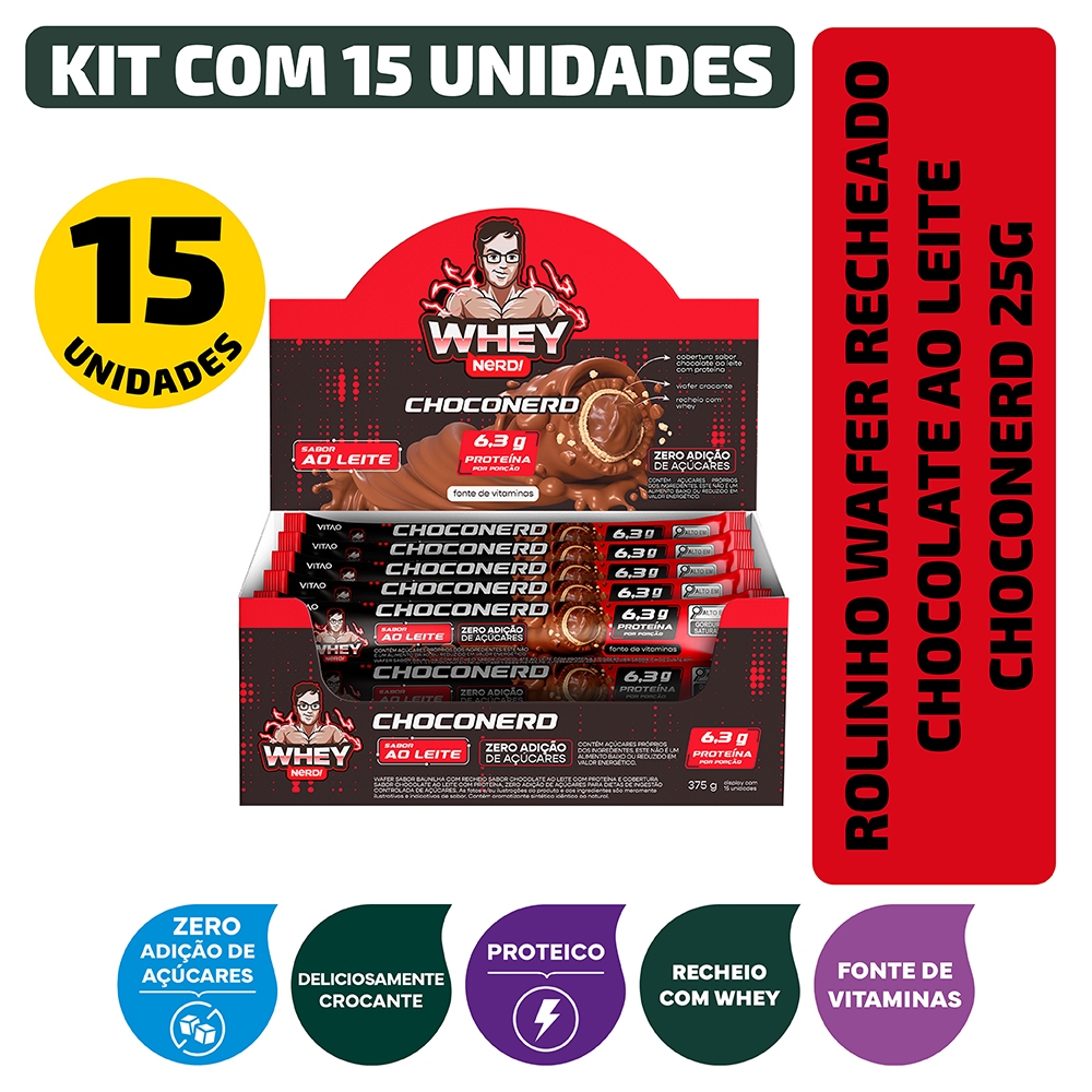 | Kit Rolinho Wafer Recheado Chocolate Ao Leite Choconerd 25g - 15 un... este produto | R$ 122,43 | 30% | 5.0/5 | — |