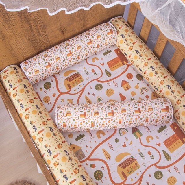 Kit Rolinhos Laterais com Edredom Dupla Face para Berço de Bebê 05 peças