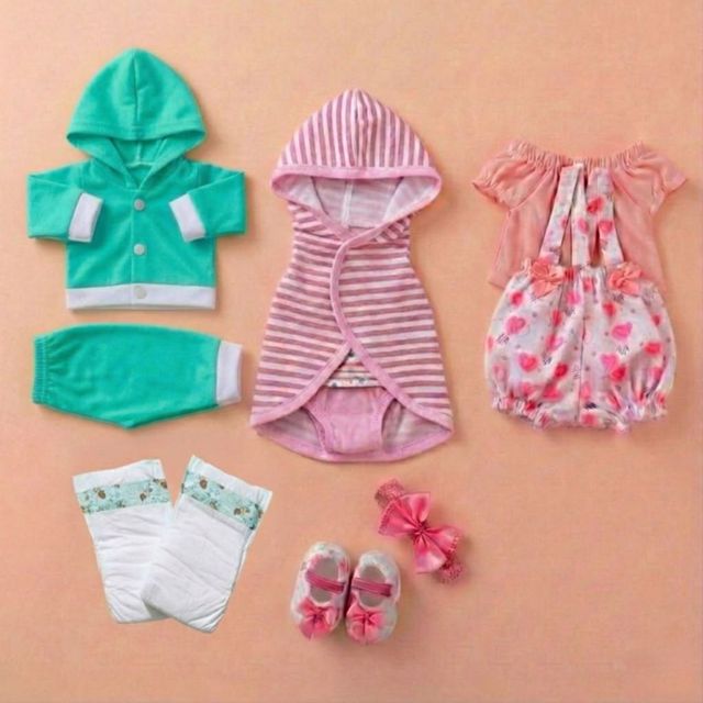 Kit Enxoval Completo para Boneca Reborn – 10 Peças Encantadoras Deixe sua bebê reborn ainda mais linda com este kit enxoval completo e delicado! São 10 peças cuidadosamente selecionadas para proporcionar charme, conforto e estilo nas brincadeiras: 3 trocas de roupa, sendo 1 a 3 peças cada 1 sapatinho 1 tiara 3 fraldas Modelos e cores enviados de acordo a disponibilidade do estoque. Ideal para bonecas de 45 a 50 cm, este kit é perfeito para presentear ou completar o enxoval da sua reborn com muito amor e cuidado. Cada detalhe foi pensado para deixar os momentos de faz de conta ainda mais especiais! Qualquer item que apareça na ilustração, mas não está na descrição, é meramente ilustrativo. NÃO ACOMPANHA AS BONECAS DA ILUSTRAÇÃO, APENAS AS ROUPINHAS.