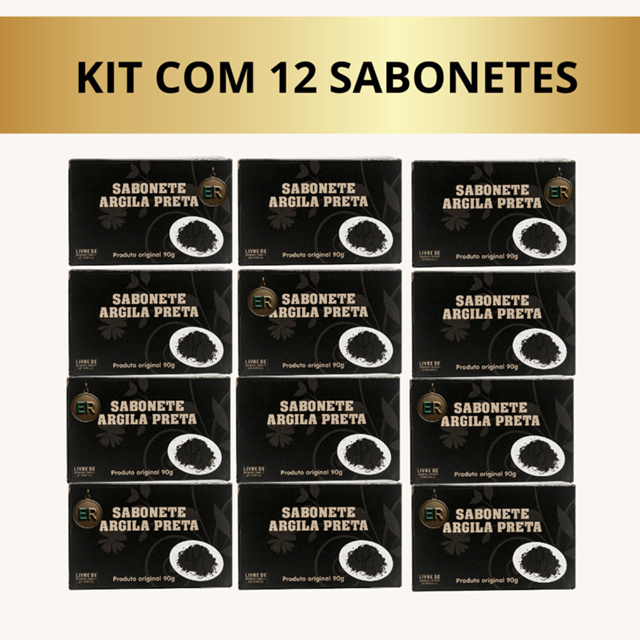 Kit Sabonete Argila Preta com 12 Unidades Facial e Corporal Skin Care limpeza Profunda da Pele