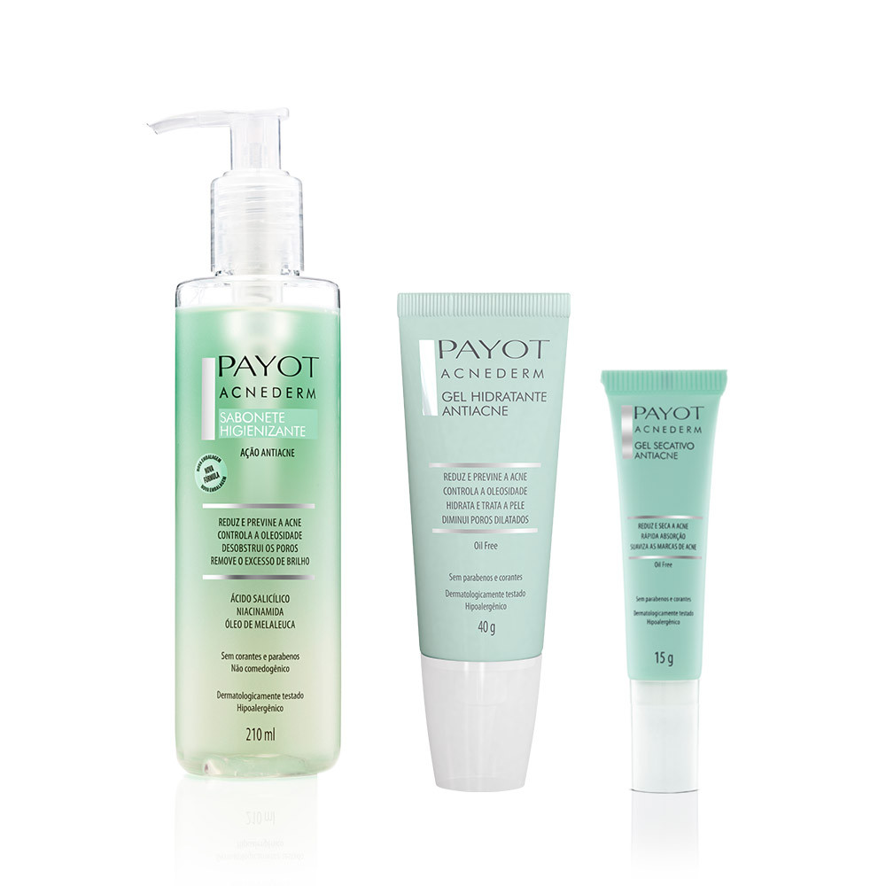 Kit Sabonete Facial + Gel Hidratante + Gel Secativo Acnederm Payot