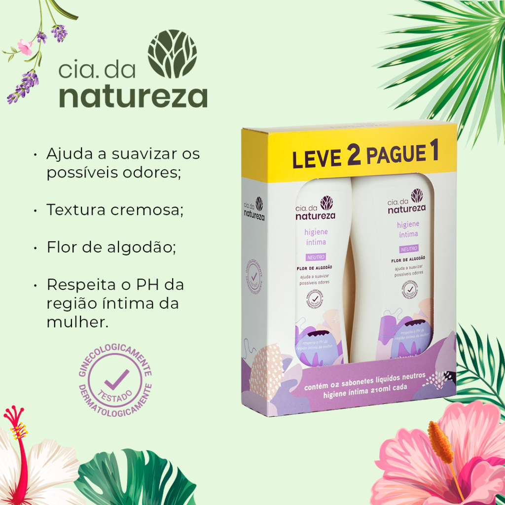 "Ajuda a suavizar possíveis odores. Ginecologicamente e dermatologicamente testado. O Sabonete Líquido Neutro Flor de Algodão para Higiene Íntima Cia. da Natureza foi desenvolvido especialmente para proporcionar uma suave e completa higiene do corpo, em particular na área genital. Sua fórmula contém Ácido Lático que respeita o pH da região íntima da mulher, ajuda a suavizar possíveis odores e prolonga a agradável sensação de proteção e bem-estar. Pode ser usado diariamente. Modo de usar: Umedeça o corpo e em seguida aplique uma pequena quantidade do produto em particular sobre a região íntima. Massageie suavemente até formar uma ligeira espuma. Em seguida, enxágue abundantemente. Uso diário. Composição em inglês: AQUA, SODIUM LAURETH SULFATE, COCAMIDE DEA, GLYCOL DISTEARATE, SODIUM LAURETH, GLYCERIN, LAURYL GLUCOSIDE, PARFUM (BENZYL BENZOATE, HEXYL CINNAMAL), PEG-150 DISTEARATE GOSSYPIUM HERBACEUM SEED EXTRACT, LACTIC ACID, SODIUM CHLORIDE, CITRIC ACID, METHYLCHLOROISOTHIAZOLINONE, METHYLISOTHIAZOLINONE. Precauções: Aplique somente nos órgãos genitais externos. Em caso de irritação ou alergia, suspenda o uso e procure orientação médica. Mantenha fora do alcance de crianças, ao abrigo da luz e calor excessivo. Em caso acidental de contato com os olhos, lave-os com água em abundância. Não use se a pele estiver irritada ou lesionada. Advertência: O excesso do uso do produto pode ser uma fonte de irritação genital. Não use em crianças."