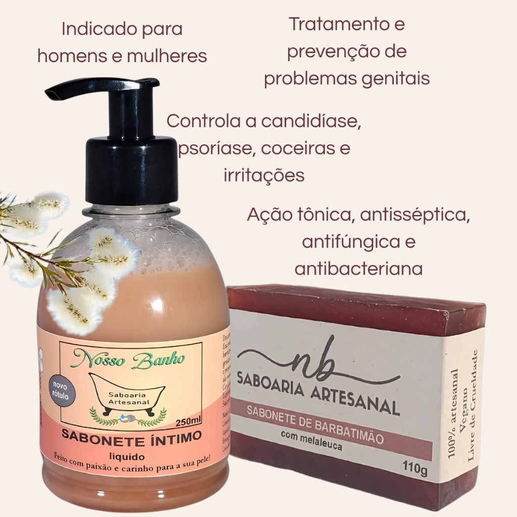 | Kit Sabonete Íntimo Líquido + Barra com Melaleuca para Candidíase este produto | R$ 28,65 | 50% | 4.9/5 | 345 |