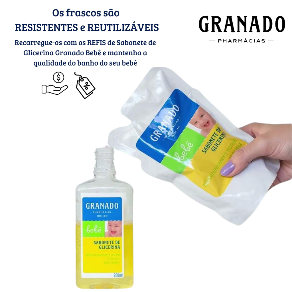 Kit Sabonete Líquido Granado Bebê Glicerina Tradicional 250ml + Refil 250ml