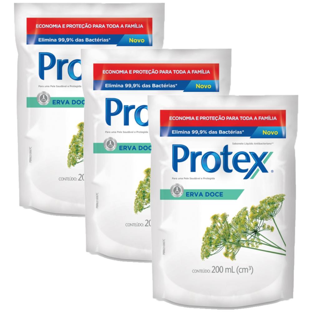 Kit Sabonete Líquido Protex Erva Doce 200ml Refil com 3 unidades