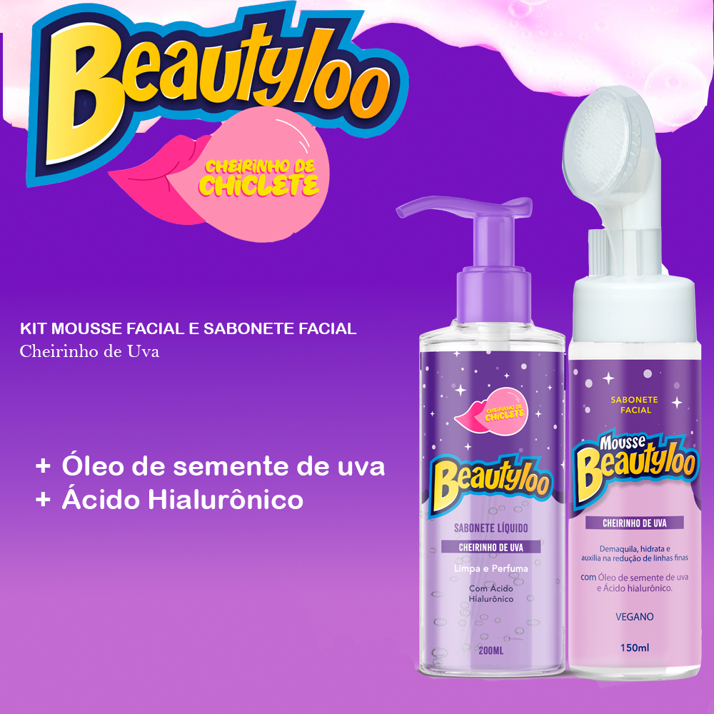 Kit Sabonete Mousse e Gel de Limpeza Cheirinho de Chiclete Beautyloo