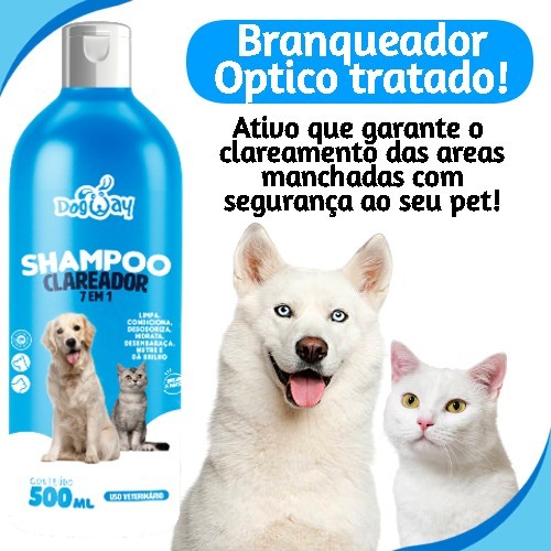 Kit Sabonete perfumado + Shampoo Clareador + Condicionador Para Cachorro e Gato - Envio Imediato Shampoo Dog Way 500ml. Shampoo ideal para todos os pelos e pele indicado para todos os cães e gatos com PH Neutro Condicionador indicado para todos os tipos de pelos e pele, indicados para todos os caes e gatos com PH neutro Ótimo para seu animalzinho, deixando a pelagem mais macia e sedosa Condicionador Desembaraçador Dog Way 500ml Dog Way Marca da Genial Pet, especializada na fabricação de produtos de Higiene & BelezaPet. Sempre pensando no bem-estar animal, a Genial Pet proporciona higiene e beleza aos pets, além de contribuir para a melhoria de sua saúde do seu animalzinho. Condicionador desembaraçador da Dog Way condiciona, desembaraça, hidrata, nutre e proporciona brilho a pelagem. Efeito condicionante prolongado e um cheirinho que fica! Facilita o penteado dando mais força e brilho. Pode ser usado em todas as raças de cães e gatos Sabonete Genial Pet: Indicações: O Sabonete Genial Pet foi desenvolvido especialemnte para cães e gatos de qualquer tipo de pelagem, limpando, higienizando e garantindo maciez e brilho. Escolha o que mais lhe agrade: - Sabonete Premium p/ Cães e Gatos com Extrato de Shitake e Macela 80g - Sabonete Filhotes p/ Cães e Gatos com Silicone e Aloe Vera 80g - Sabonete Genial Pet com Erva Santa Maria 80g