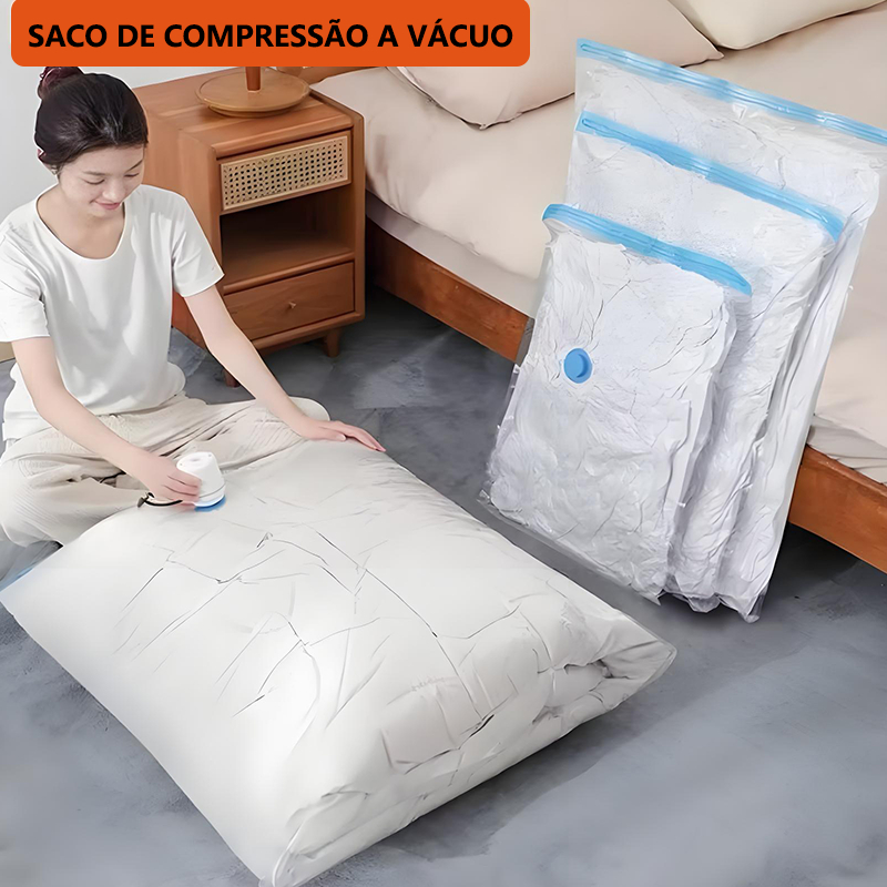 KIT Saco a Vácuo ou Bomba manual Para Viagem Organização de Roupas Mala Viagem Guarda Roupas