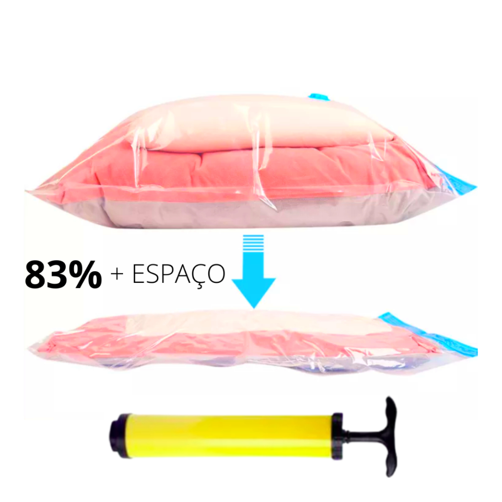 O QUE VEM NO PEDIDO: Você tem três opções de escolha: Opção 1: 6 unidades de saco a vácuo 50x60 cm + 1 bomba de sucção. Opção 2: 5 unidades de saco a vácuo 50x60cm (sem bomba de sucção). Opção 3: 5 unidades de saco a vácuo 50x60cm, 3 unidades de saco a vácuo 60x80cm, 2 unidades de saco a vácuo 70x110cm + 1 bomba de sucção INFORMAÇÕES DO PRODUTO: 50 x 60 cm de dimensão; Saco a Vácuo com válvula para sucção; Material PVC; A prova de umidade; Protege contra mofo, odores, insetos e sujeiras. DESCRIÇÃO: Kit 6 Saco A Vácuo Organizador 50x60cm Mala Viajem + Bomba. Saco a Vácuo organizador com 50x60cm de dimensão, capaz de fazer você ganhar até 83% de espaço em sua mala. Saco organizador com válvula para melhor compressão de suas roupas/lenços/lençóis... Perfeito para sua viajem e organizar o seu closets, guarda roupa, armários e malas. Fabricado em Material PVC, é a prova de umidade, hermético, reutilizável, impermeável e super fácil de usar. Além de proteger contra: mofos, odores, insetos, sujeira e pó. Saco vácuo com plástico reforçado, muito difícil de rasgar ou furar. PERGUNTAS FREQUENTES: - QUAL A DIMENSÃO DO PRODUTO? Todos os sacos desse kit possuem 50 x 60 cm, bomba de sucção com 25cm de altura. - PODE FAZER A SUCÇÃO DO AR COM ASPIRADOR DE PÓ? Sim, se você preferir você pode fazer a sucção com um aspirador de pó. - O SACO POSSUI VÁLVULA? Sim, todos os sacos possuem uma válvula para tornar a sucção mais eficiente. - QUAL PRAZO DE POSTAGEM? Todos nossos produtos estão disponíveis em pronta entrega, enviamos no máximo em até 24 horas úteis.