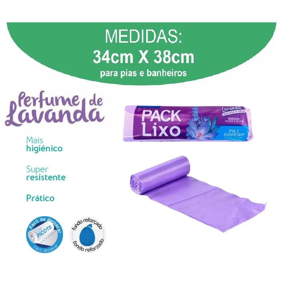 KIT SACO DE LIXO PACK LIXO LAVANDA PIA E BANHEIRO 34X38 RL ( PACOTE 40 UND CADA)