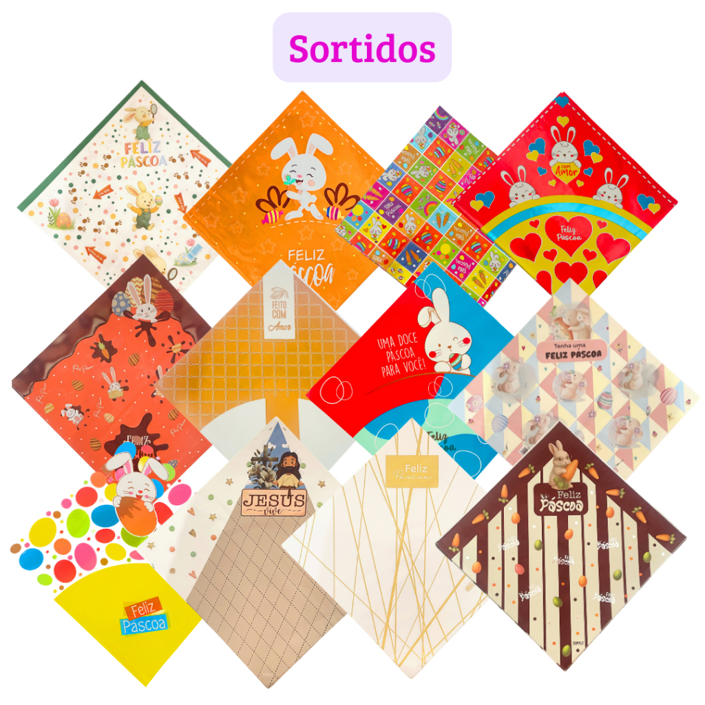 Kit saco de ovo de pascoa para ovos de 150 até 500 gramas - sortidos 75 unidades