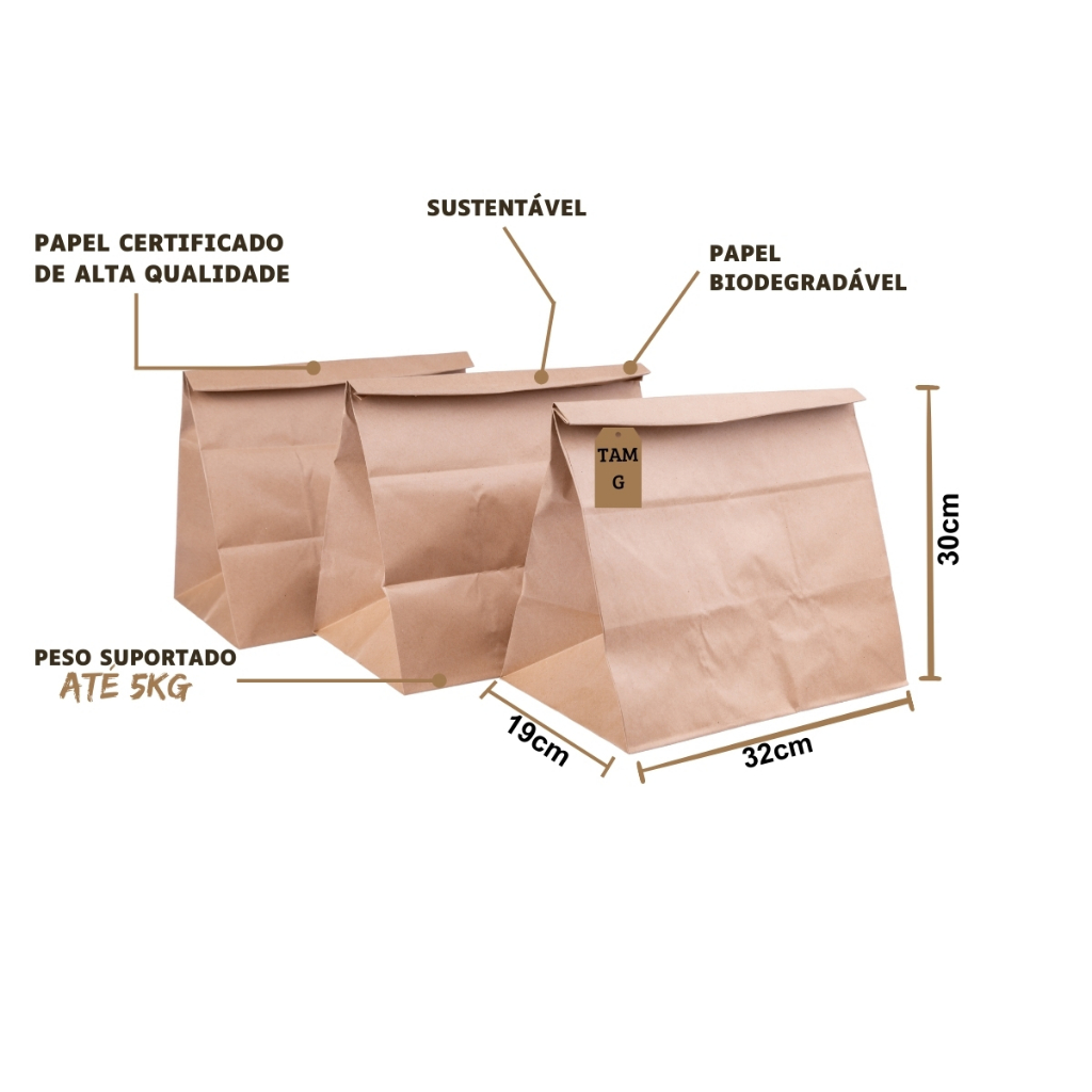| Sacola de Papel EXG 38,5x33x21cm - Kraft Fundo Largo - 20 unidades ... | R$ 58,90 | — | 5.0/5 | 1 |