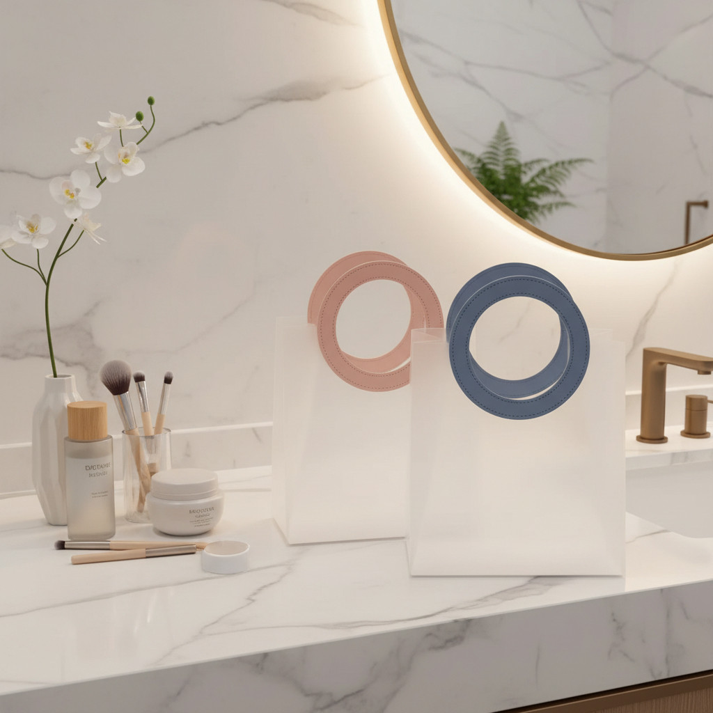Kit Sacola Transparente Fosca Reforçada Alça de Couro REDONDA O KIT Perfeito de Sacolas de PVC com Alça de Couro Sintético é uma opção prática e elegante para diversas necessidades do dia a dia. As sacolas são confeccionadas em PVC, um material conhecido por sua durabilidade, resistência à água e fácil limpeza, tornando-as ideais para carregar diferentes tipos de itens com segurança. Benefícios: - As alças são feitas de couro sintético, que além de ser uma escolha ética e sustentável, proporciona um toque de sofisticação ao design. - Perfeito para quem busca praticidade e estilo, seja para compras, uso no trabalho, ou até como brinde em eventos e lojas. - É uma solução versátil, unindo modernidade e elegância em um único conjunto. Características: - Tamanho P – 18,5x16x8cm Ideal para pequenos mimos ou lembrancinhas de eventos. - Tamanho M – 22x21x11cm Perfeito para cosméticos, velas aromáticas ou até kits de presente. - Tamanho G – 27x23x13cm Para roupas maiores ou produtos artesanais mais volumosos. - Tamanho GG - 32x26x14,5cm Para produtos maiores. Feitas com materiais duráveis e acabamento impecável, são a escolha perfeita para valorizar seus produtos e presentes.