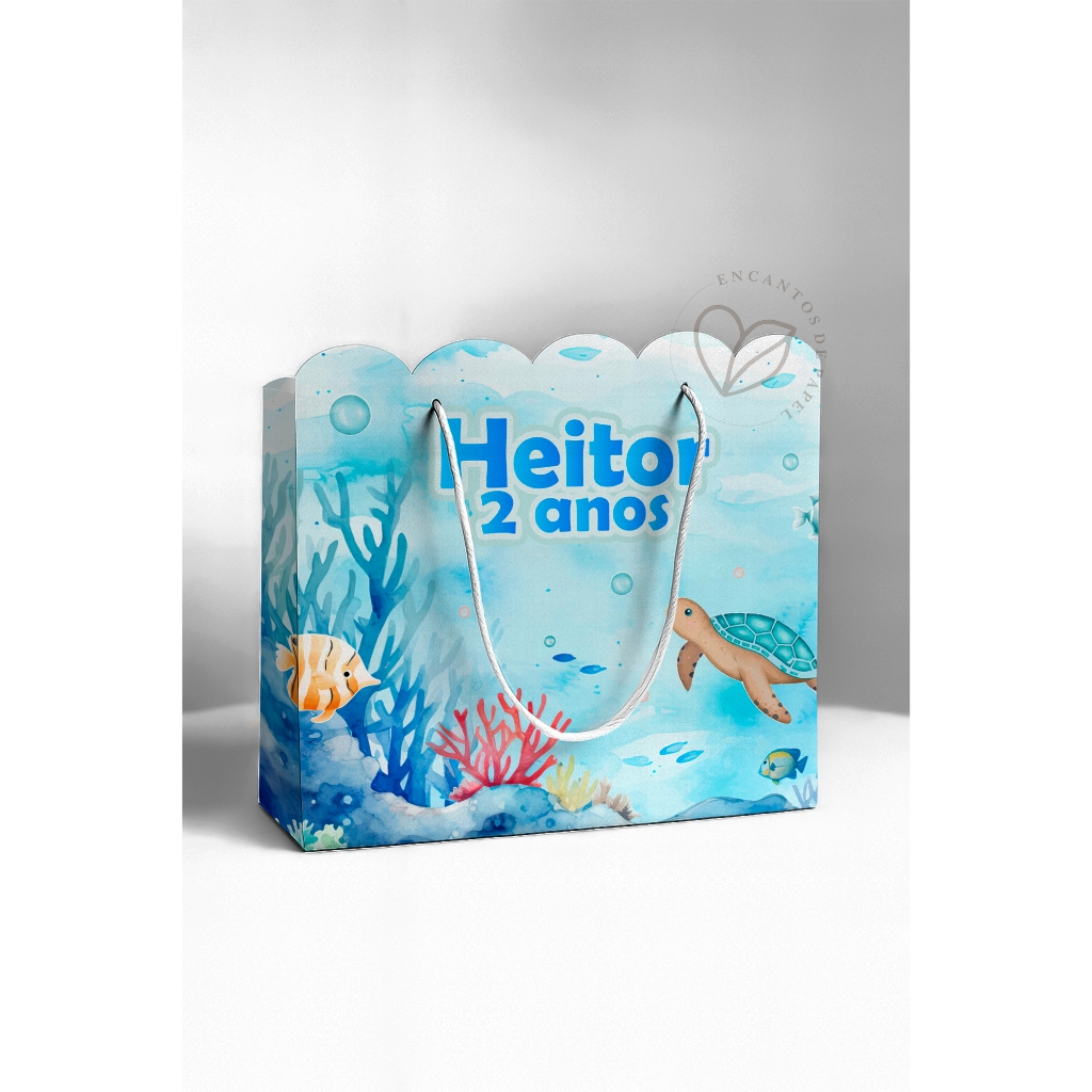 Kit Sacolinha Personalizada G | Fundo do Mar | Lembrancinha Infantil | Pegue e Monte