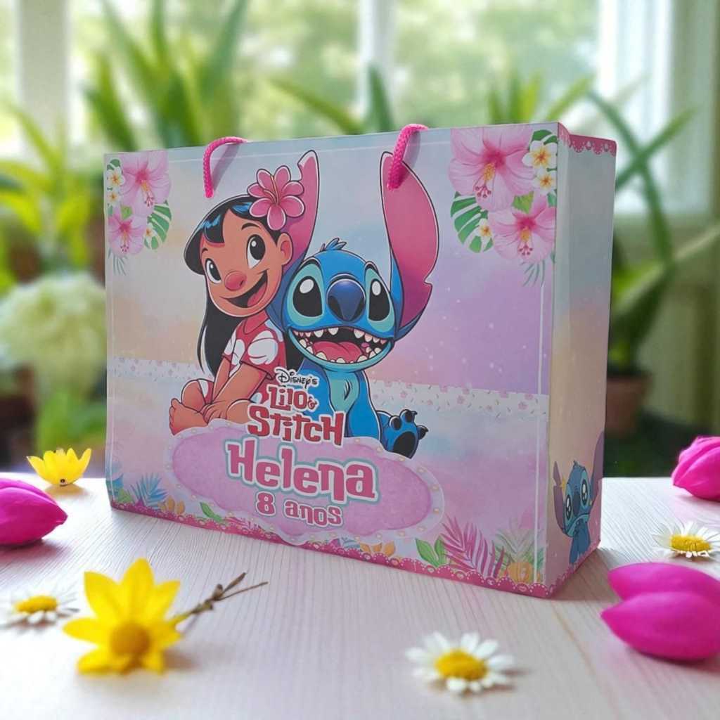 | Kit Sacolinhas Personalizadas Festa (G) Lilo e Stitch (20x16x6cm) este produto | R$ 27,12 | 15% | 4.9/5 | — |