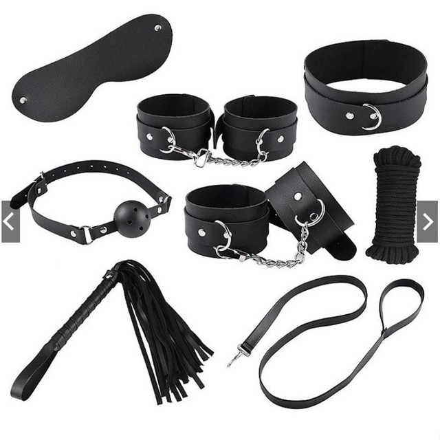 Enviamos em embalagem discreta e segura!!! Para compras no atacado, chamar no chat. Kit Sado Erótico Tornozeleiras, Algemas, Venda e Chicote, Mordaça com Bola, Coleira com Estirante e uma corda, Material: Ferro e Couro Sintético. Medidas: Separador de Tornozelo 23 cm + 27 cm, Algema 23cm + 27cm, Coleira 44 cm, Chicote 48 cm, Mordaça 60.5 cm, Estirente 98 cm, Venda 20 cm de comprimento (medidas aproximadas). Higienização: Guarde na embalagem original. Não compartilhar e não expor a temperatura superior a 50°C.