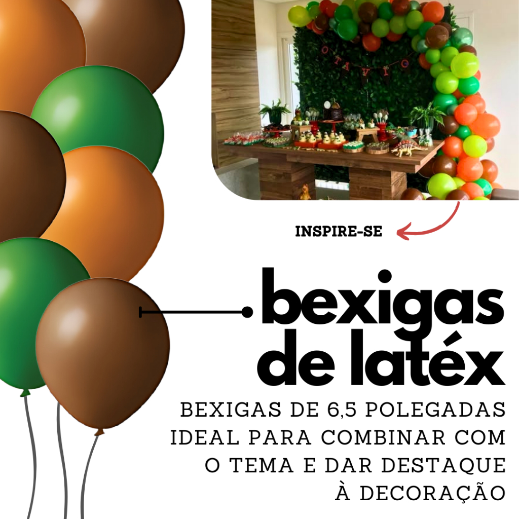 KIT SAFÁRI – 3 BALÕES METALIZADOS + 150 BEXIGAS 6,5 POL Uma decoração completa e cheia de personalidade para festas temáticas! Transforme qualquer ambiente em uma verdadeira aventura na selva com o Kit Safári, composto por 3 balões metalizados de animais e 150 bexigas nas cores da natureza. Ideal para festas infantis com tema de selva, zoológico ou bichos, esse kit une praticidade, cor e muito charme para sua decoração. ESSE KIT CONTÉM - 1 balão metalizado TIGRE – 30 x 36 cm - 1 balão metalizado ZEBRA – 31 x 44 cm - 1 balão metalizado GIRAFA – 25 x 44 cm - 50 bexigas 6,5 pol VERDE ESCURO - 50 bexigas 6,5 pol MARROM - 50 bexigas 6,5 pol LARANJA ESPECIFICAÇÕES DOS BALÕES - Material: Filme metalizado de alta qualidade - Válvula automática: não precisa selar após inflar - Podem ser inflados com ar ou gás hélio - Reutilizáveis com manuseio cuidadoso - Cores vivas e acabamento brilhante ESPECIFICAÇÕES DAS BEXIGAS - Tamanho: 6,5 polegadas (aprox. 16 cm ao inflar) - Material: Látex de qualidade, alta elasticidade - Podem ser inflados com ar ou gás hélio - Cores temáticas: verde escuro, marrom e laranja (50 unidades de cada) - Ideais para arcos, painéis e arranjos APLICAÇÕES - Festas com tema safári, selva, bichos ou zoológico - Decoração de painéis, centros de mesa, lembrancinhas e arcos orgânicos - Perfeito para aniversários infantis, eventos escolares e ensaios fotográficos CUIDADOS IMPORTANTES - Bexigas podem representar risco se engolidas ou aspiradas - Usar sob supervisão de adulto