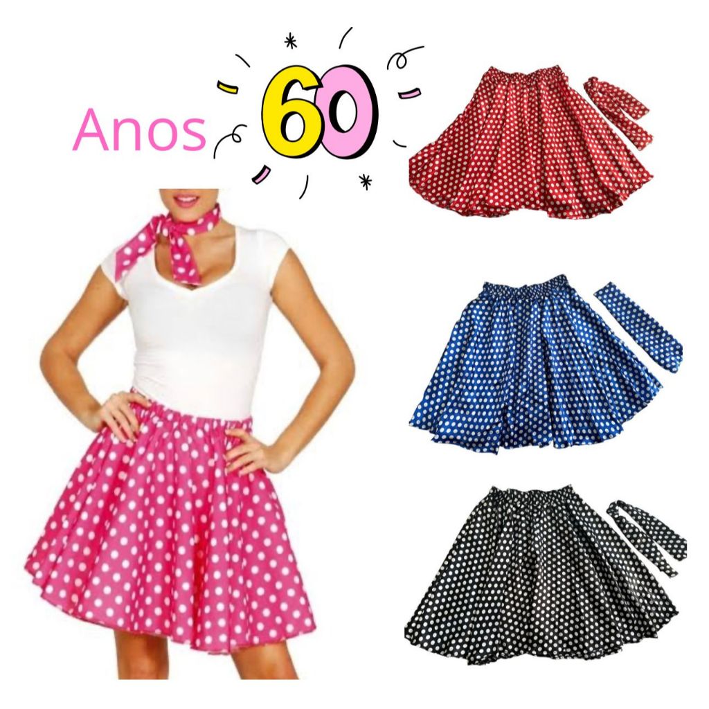 O produto Kit Saia e Lenço de Bolinha Feminina Adulto Anos 60 Retro Godê Rodada Poá Moda Feminina é um item na subcategoria Saias (de Roupas Femininas), disponível na Shopee Brasil por R$ 53,00. Avaliado em 4.9/5 pelos compradores e 141 unidades vendidas, este produto se destaca pelo excelente custo-benefício.