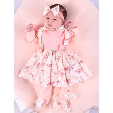Kit Saida De Maternidade Menina Rosa 04 peças Charme Vermelha Floral Suspensório Roupas de Bebê