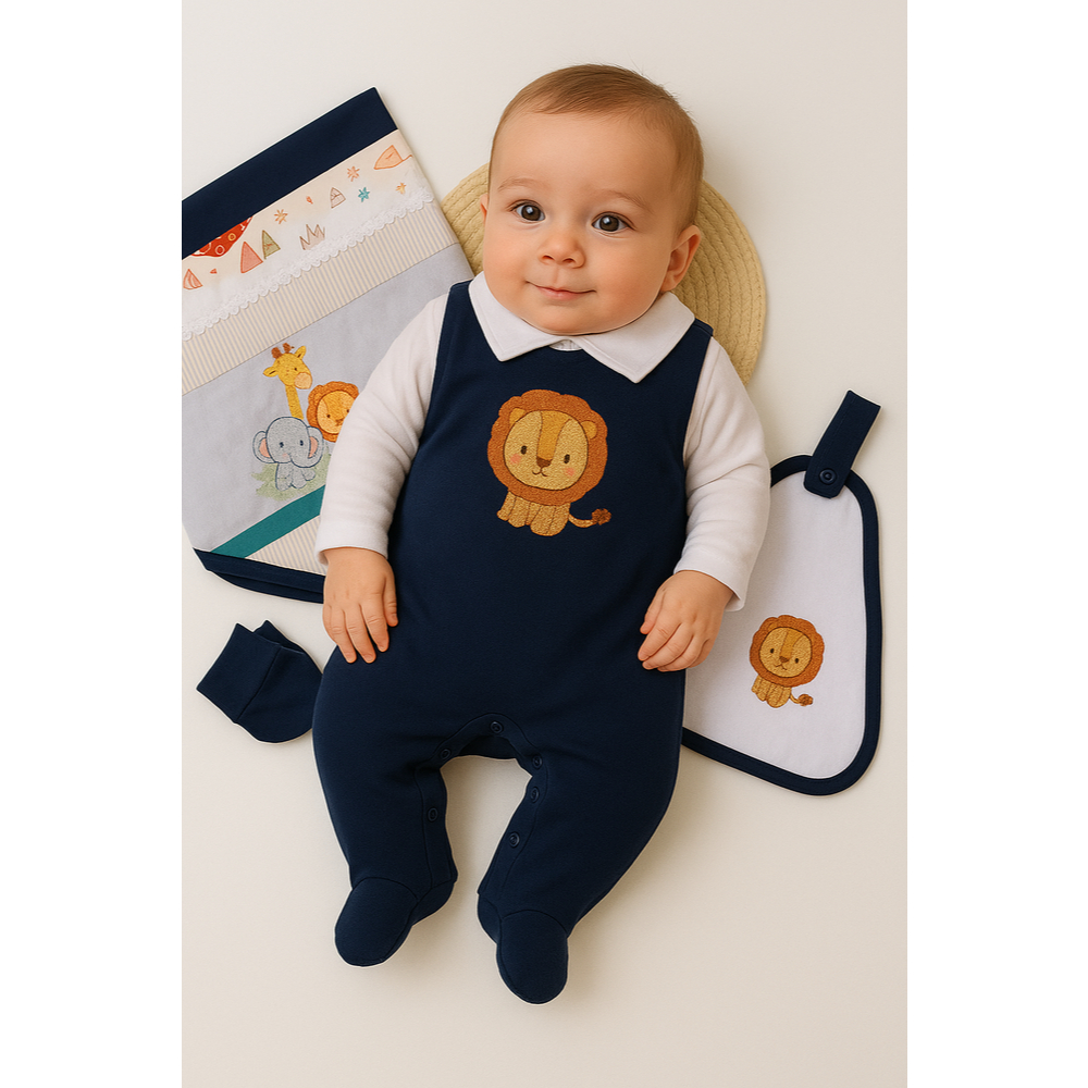 Kit Saída de maternidade para bebe menino/menina leão safari, malha 100% conforto garantido