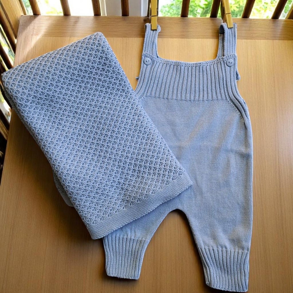 KIT SAIDA MATERNIDADE 2 PÇS TRICOT JARDINEIRA MACACÃO E MANTA PARA BEBE RECEM NASCIDO MENINO E MENINA