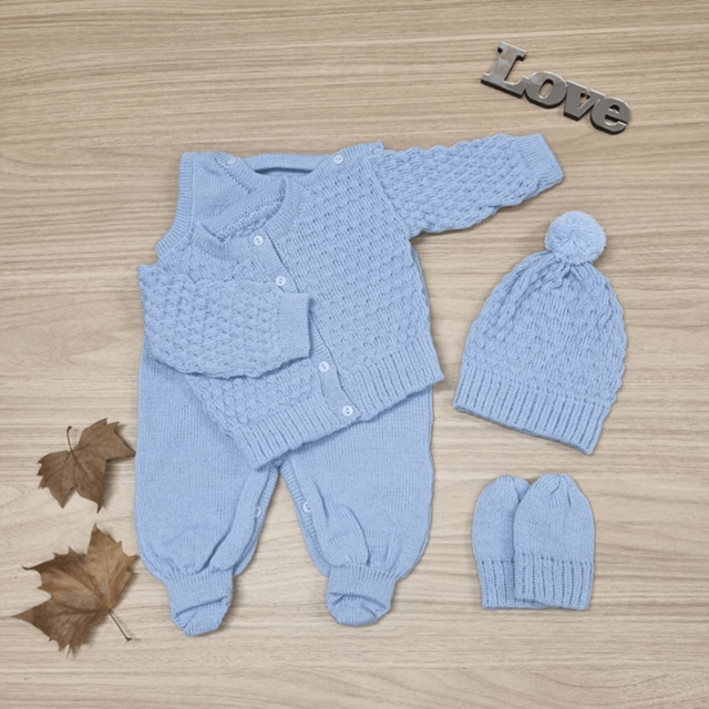 Kit Saída Maternidade Mathias para Menino em Tricô Artesanal - 4 peças