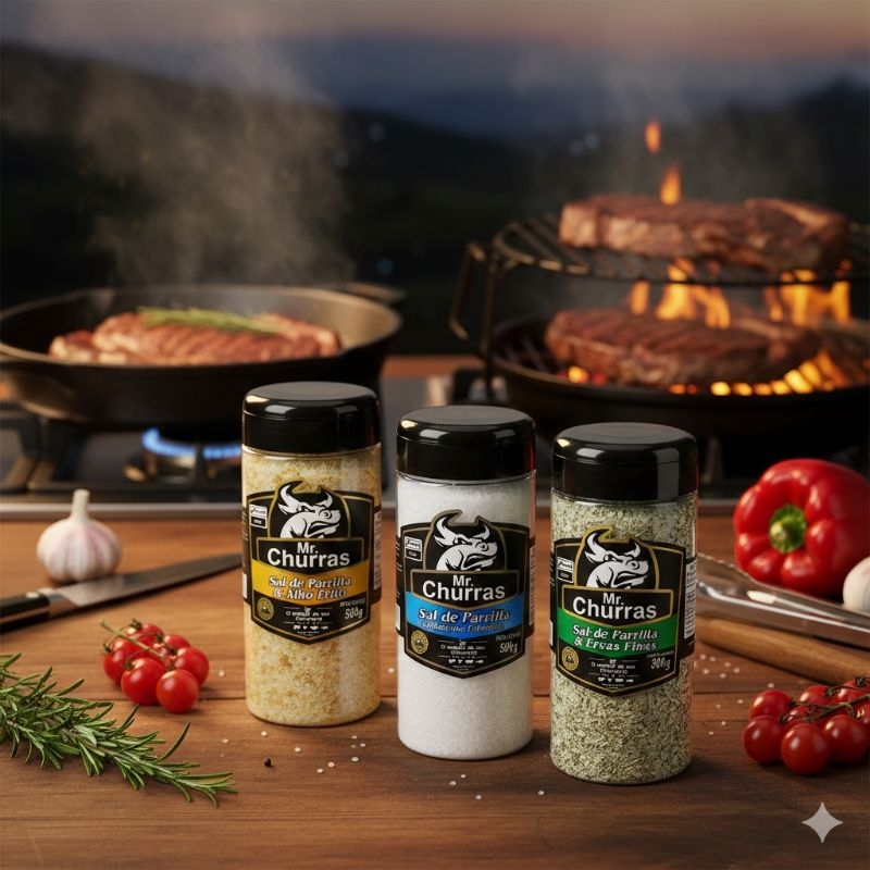 A MR. CHURRAS está sempre pensando na qualidade de seus produtos e no bem estar da sua família. Cozinhar é transformar os alimentos em sabor e alegria. Nossos produtos são selecionados preparados e embalados para melhor atender. Produtos sempre prontos para enviar a todo Brasil peça já seus produtos. MR. CHURRAS - O Melhor do Seu Churrasco!!! 01 Sal de Parrilla Tradicional Original Entre fino 500g 01 Sal de Parrilla & Lemon Pepper Premium 500g CONFIRMANDO SEU PEDIDO SEGUE SEU ENVIO SUPER RÁPIDO: Todos os potes acompanham a tampa com dupla dosagem conhecida também como flip top. 01 Sal de Parrilla & Ervas Finas 500g 01 Sal de Parrilla & Alho Frito 500g 01 Sal de Parrilla Tradicional Argentino 500g