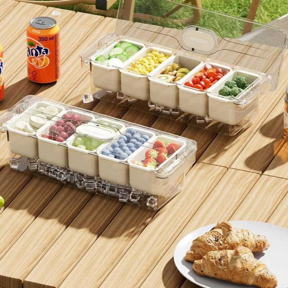 Kit Saladeira com 5 Divisórias, Ideal para guardar ou servir Saladas e Frutas (TRC1201)