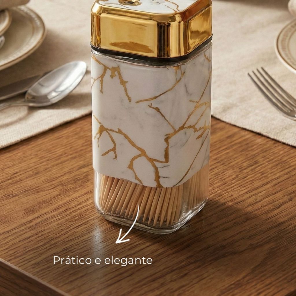 Kit Saleiro Luxo Paliteiro Pimenteiro Dourado Branco Preto