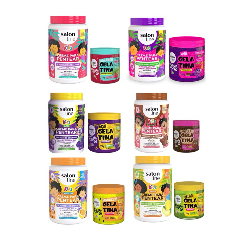 Kit Salon Line Kids – Creme de Pentear + Gelatina | Várias Fragrâncias Frutadas!