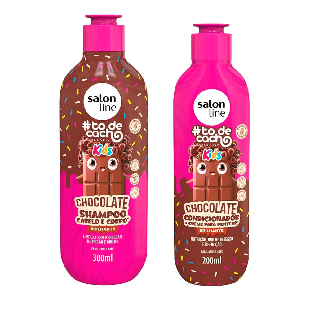 Kit Salon Line #TôDeCacho Kids Chocolate – Shampoo, Condicionador e Creme para Pentear Cuide dos cachinhos das crianças com carinho e diversão com o Kit Salon Line #TôDeCacho Kids Chocolate! Esse kit