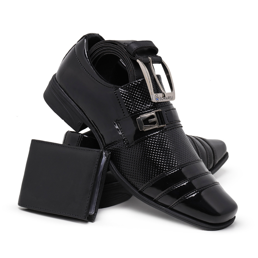 Kit Sapato Social Masculino Com Cinto E Carteira 833 Verniz Brilho Moderno Formatura Estilo Italiano