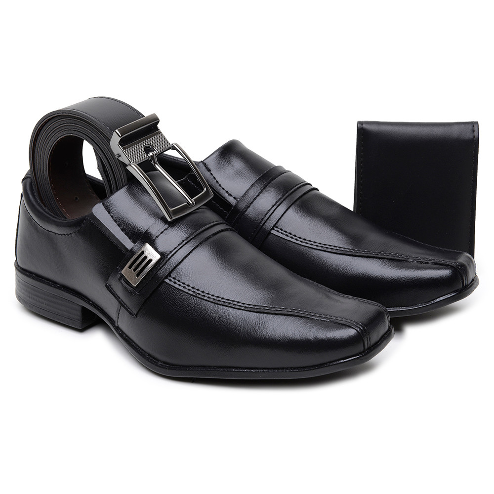 Kit Sapato Social Preto West Line Carteira + Cinto