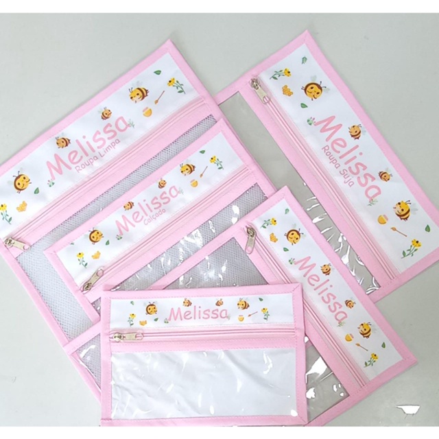 | Kit 5 Saquinhos Maternidade Com Tag Bordada De Identificação Com Zíper | R$ 22,99 | 11% | 4.8/5 | 7 mil |